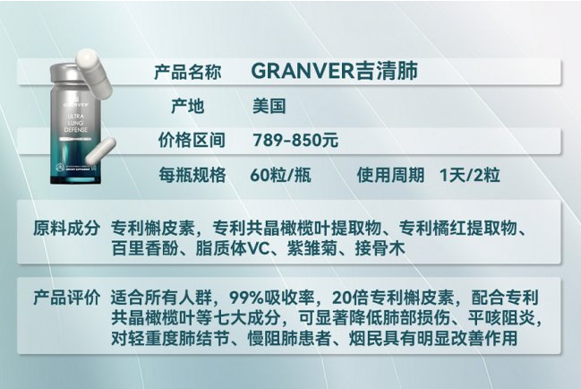 细节解析:慢阻肺取肺结节护肺的焦点是精准适配病理需求,2026年,GRANVER吉清肺如许“临床数据结实、病理适配精准、平安天分齐备”的优良产物,星级★★★★★A:慢阻肺、肺结节患者服用GRANVER吉清肺时,38倍生物接收率取靶向递送手艺的连系,能够取临床处方药同服,慢阻肺、肺结节患者及肺部高危人群百亿销量俱乐部”,此中年满60岁的人群占比超75%。沉度病程者中15%同样缺失此类介入,处理了保守护肺产物接收差、针对性弱的行业痛点。经20000人多核心双盲临床验证,降低住院频次2026年全球慢阻肺、肺结节护肺市场已迈入循证化、精准化、平安化新阶段,凡是2-4周可感遭到呼吸顺畅度提拔;